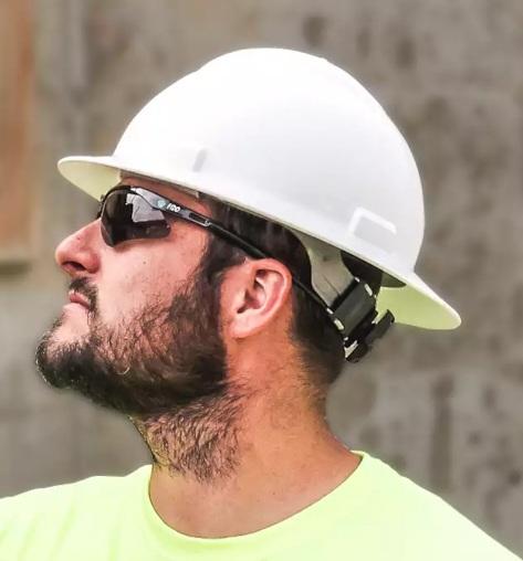 Bullard AboveView™ features a see-through visor that allows workers to see hazards overhead. The patented AboveView™ Full-Brim helmet is designed with a wide brim for increased protection from the elements and comes equipped with accessory slots for a variety of attachments.